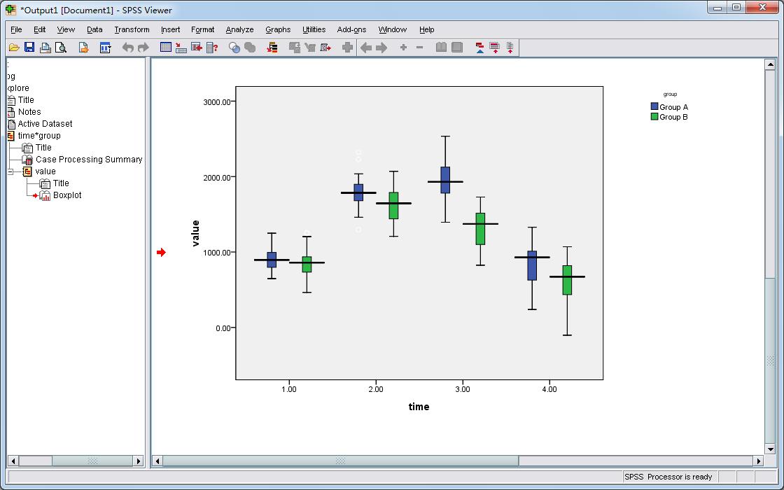 - 关闭Chart Editor,返回Output - SPSS Viewer窗口。